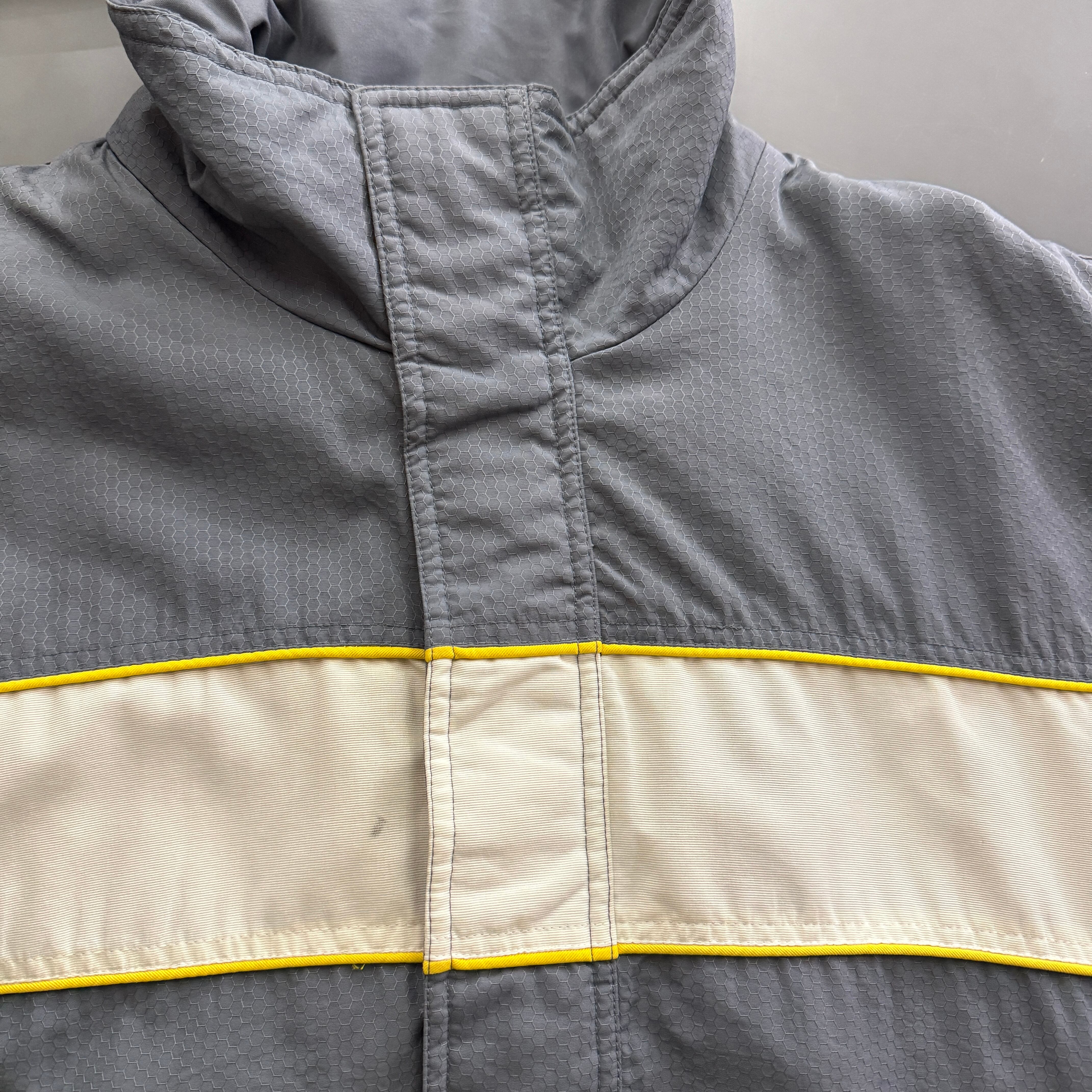 やや使用感あり、フード欠損、袖先・フロント中央に汚れ